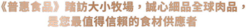 普惠食品企業(yè)股份有限公司於1985年成立至今,致力於提供臺灣食品業(yè)者來自於全球的優(yōu)質(zhì)牛肉、豬肉、雞肉、火雞肉品與海鮮,肉品批發(fā)與肉品加工分切服務,最多元最專業(yè)的肉品進口商與批發(fā)商。